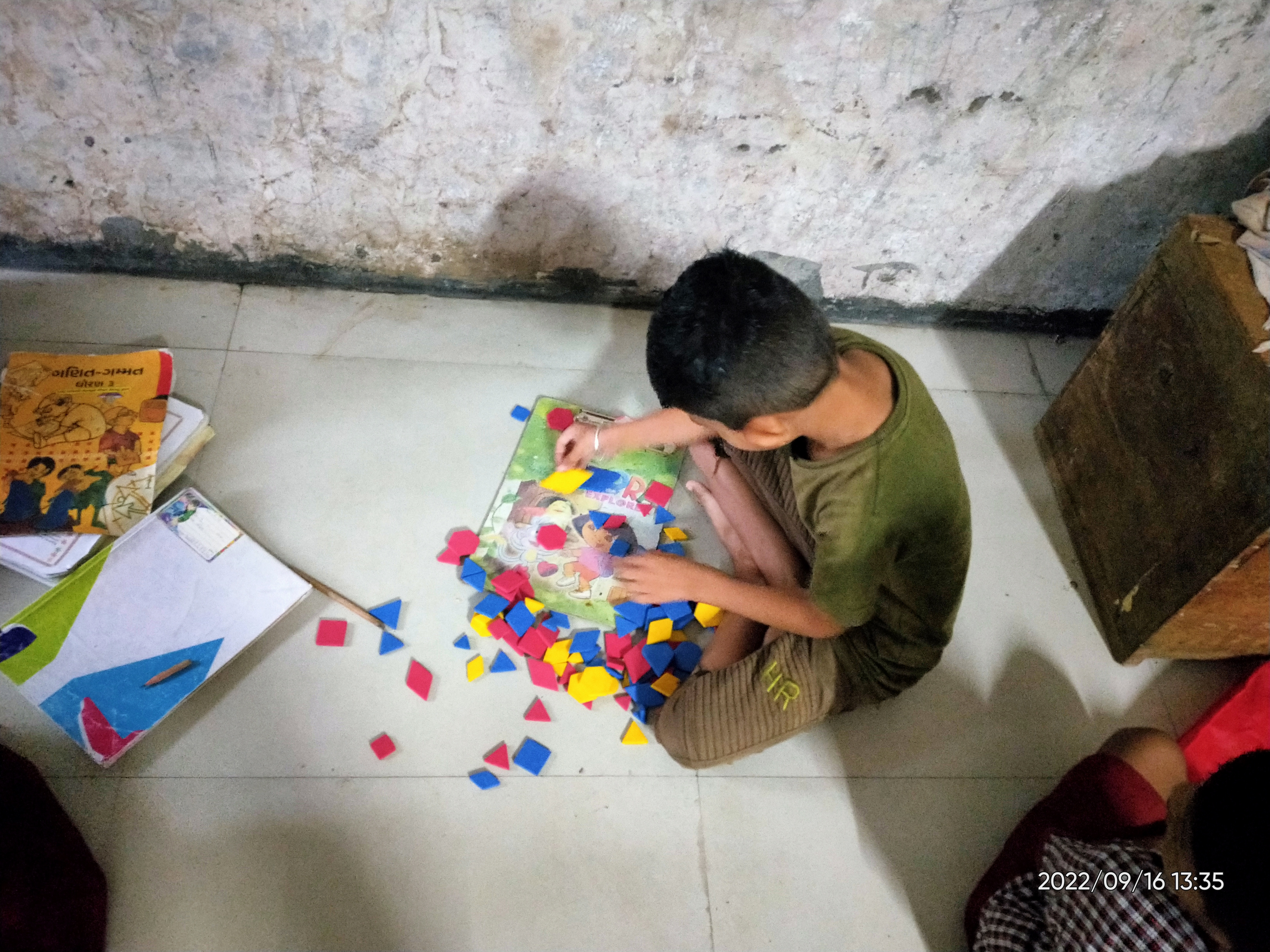 બ્લોકની ગોઠવણી કરવાનો આનંદ લેતા વિદ્યાર્થીઓ